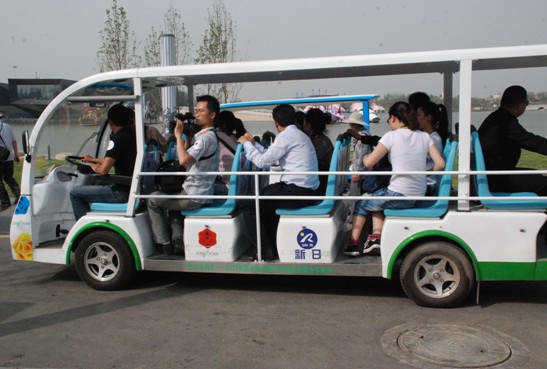 新日电动车为本次世园会提供了200多辆低碳环保的电动车。这批车在世博电动车的基础上进行了一系列技术升级,由于世园地形特点复杂,车体增加了安全防护栏,为确保每辆车都可全天候不间断运营,电动车采用了抽屉式电池盒设计能够快速更换电池。电动车承担园区内观光、接待、环卫、安保、医疗、营运以及供世园工作人员、志愿者驾驶等各项服务。