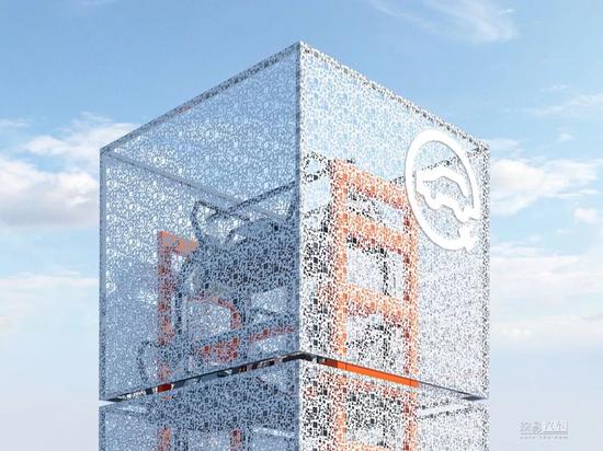 根据设计方案,“超级充电站”位于第一层,并覆盖在轻量化的顶棚之下。停车塔楼则被涂覆了反射性、多孔金属,并与汽车历史美学中的铬黄色遥相呼应。对于在寻找停车位、急需充电的电动汽车而言,充电塔楼还创造了一种“灯塔”效应以指引汽车。