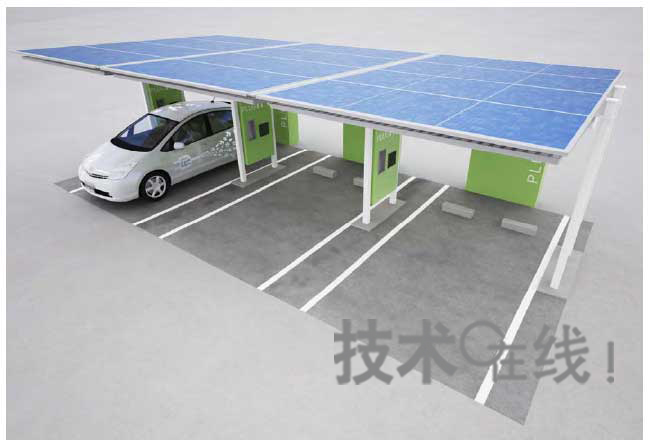 这种充电站装有太阳能发电系统和蓄电设备,可与商用电力连接。能将太阳能发的电储存在蓄电设备中,然后利用太阳能发电和蓄电设备的电力为车辆充电。蓄电设备储存的电力用完时,可用商用电力为车辆充电,因此能够不受天气和时间的影响稳定充电。