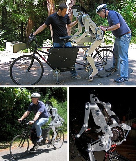 自行车和机器人共重200磅(约合90公斤)左右,因此操纵起来并非易事。不过,这是一种令人着迷,但又有点令人害怕的设计理念。