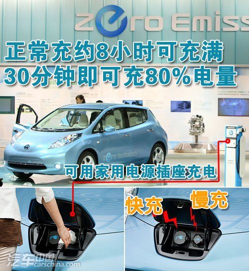 而在家为日产Leaf聆风充电时,使用200伏交流电,大约需要8小时左右就可以充满。一般大城市中晚上10点左右进行充电,早上6点后出门完全有足够的时间可以达到这一充电时长。如果有紧急情况,通过10分钟的快速充电,日产Leaf聆风就可行驶50公里,方便车主长途行驶。但是这种快充对电池是有一定伤害的。