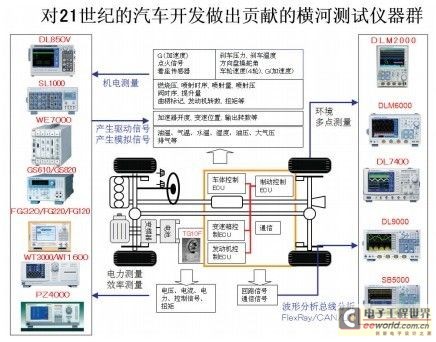 日本横河电机(YOKOGAWA)的解决方案较多考虑了汽车测试的需求。横河公司的功率分析仪在变频器、电机、电池功率测试、效率评估以及电能能耗测试等方面擅长,独特的快速分析和精确的测量数据为开发和测试工程师发现问题并解决问题提供了可靠的保证。横河公司的数据采集系统也受到工程师们的欢迎。由于汽车上面测试信号的特殊性,测试工程师需要多通道的集电压/电流/温度/应力/加速度/扭矩/转速/流量等相互隔离的多路信号采集于一体的数据采集。横河公司的DL750/DL850可完全满足这方面的需求,能很好的解决汽车研发中多路的甚至十几路,几十路的信号处理分析和记录。